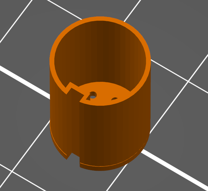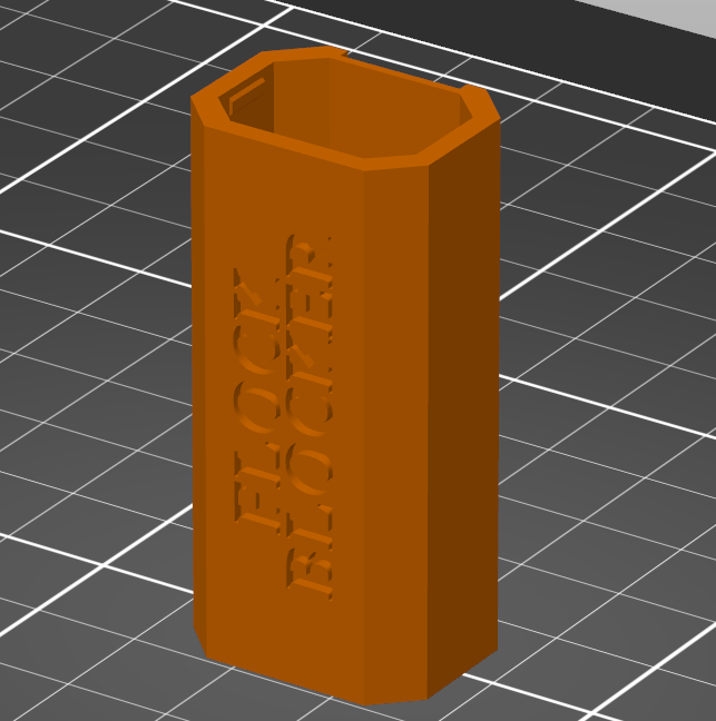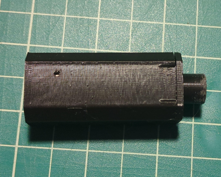 The second piece is a cover which has an integrated plug. The plug is printed face down, which requires support material for a successful print.