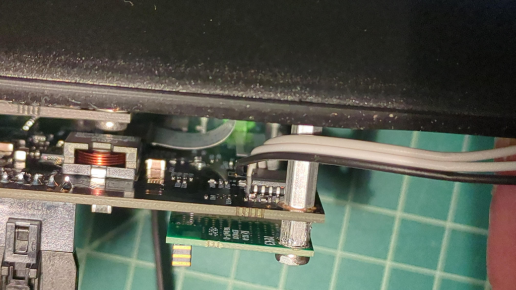We also learned that there is a serial UART port exposed on the Flock daughter board, though it is typically not populated. We soldered on three wires in order to interface with the UART.